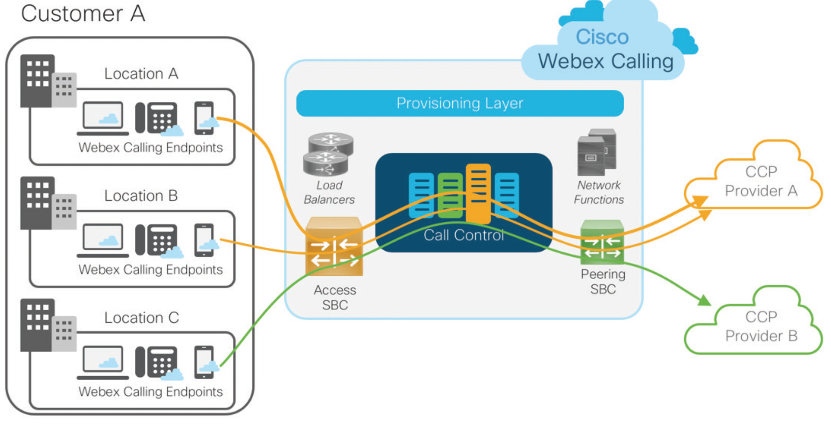 Option 1: Let Cisco handle it : This option allows you to leverage Webex calling cloud and their global PSTN service providers for PSTN connectivity. You can further mix and match PSTN service providers depending on the location or the region. The Webex control hub allows you to establish the connectivity to your preferred PSTN provider on a site-by-site basis.