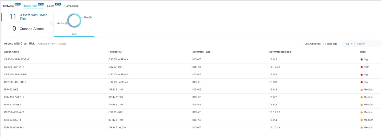 In order to be proactive and predictive in the world of IT, we need a combination of historical and live data from the infrastructure. Descriptive and predictive analytical techniques using AI and machine learning can be then applied to uncover insights leading to right action. Device “crash risk” is one of the many insights Cisco is offering through the PX Cloud. Knowing the likelihood of a device crashing can allow us to take remediation actions to prevent catastrophic outcomes.